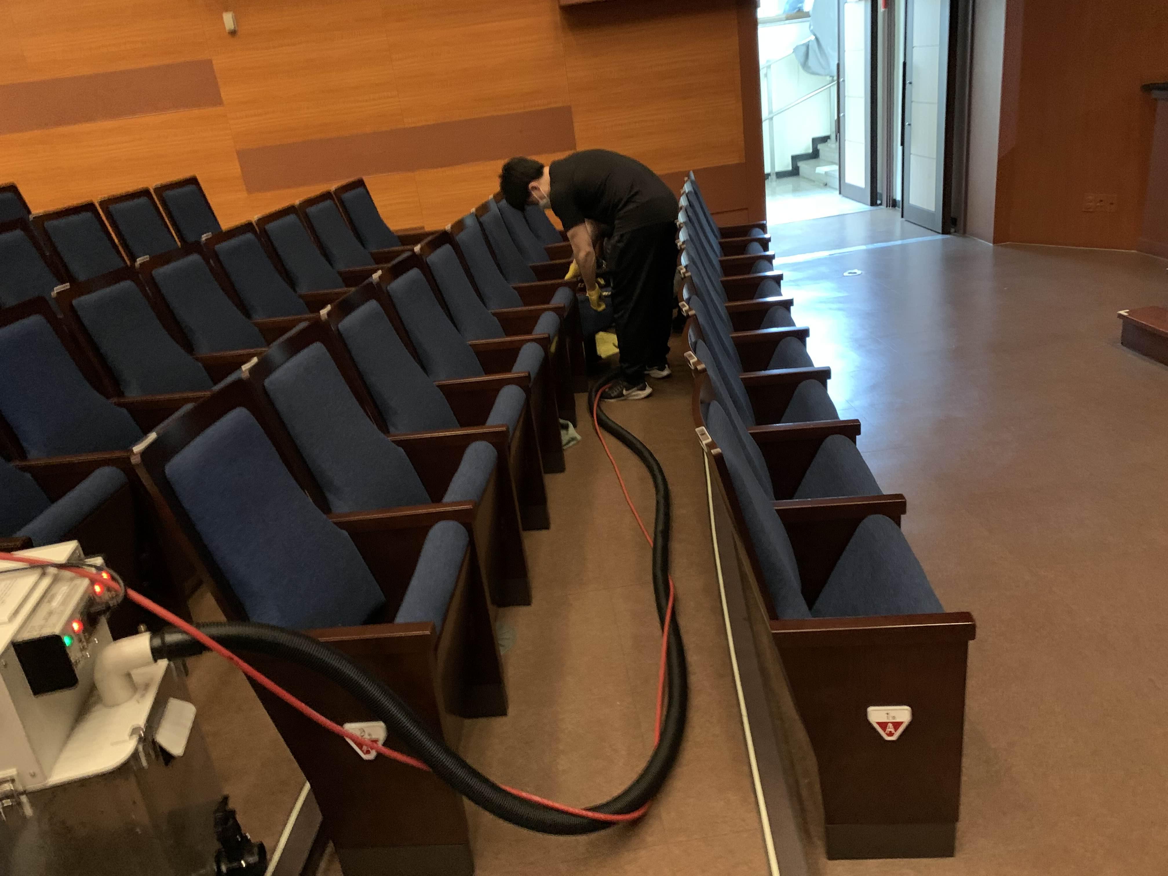 고정된 의자이기 때문에 전문장비로 청소가 진행된답니다.