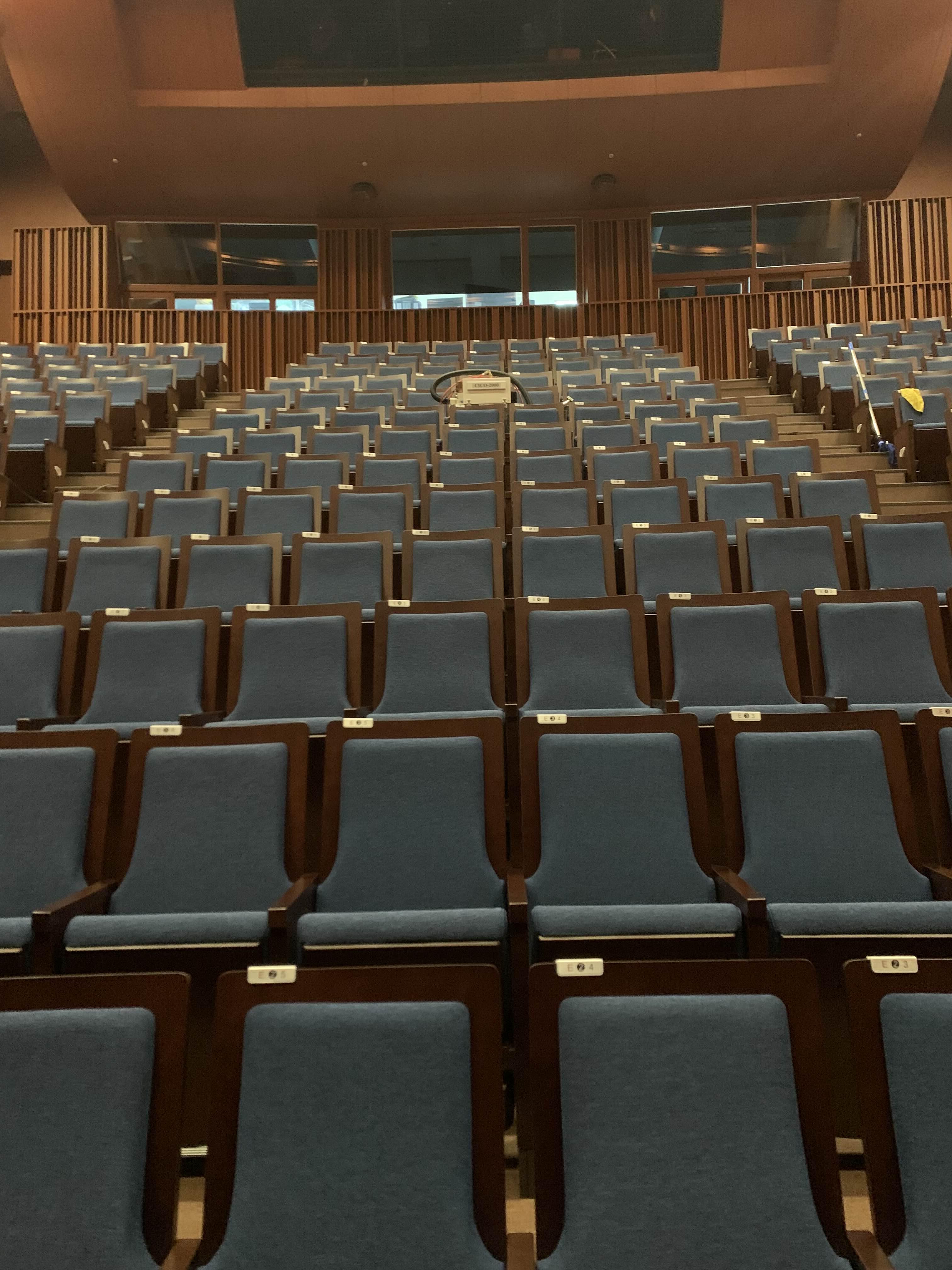 보통 공연장이나 교육장같은 곳의 의자들이 패브릭의자로 되어있는데요.